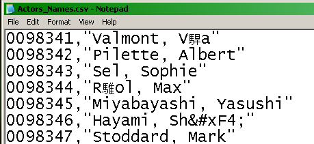 File Converting As an example of the use of the use of the File converter, here is a case I used it in recently: The task I had was to convert a CSV file I downloaded from the internet into a format suitable for the old DOS program Dbase III, ![]() Below is the file as it appeared in notepad, There are several problems with this file:- 1. The name on line 98344 has MojiBake symbol corruption - there is a problem with the file format 2. The name on line 98346 has foreign symbols encoded in HTML format 3. Dbase is likely to have issues with nonstandard Ascii characters, so I want to convert everything to safe characters ![]() Using the file converter, I selected the source file. at first I assumed the file was Ansi, or UTF-8, however the preview screen still showed corrupt symbols. However UTF-7 resolved the problem, so this must be the soruce format. ![]() So now we can read the format OK, we need to convert it to a format Dbase will like First we need to remove the "ô" entries and replace them with their equivalent symbols, the texttrick "HtmlUnicodeReverse" will do this Then we want to replace all ascii chars>127 with their closest A-Z equivalent, "asci127safe" will perform this conversion We can preview the conversions using the "Preview TextTricks" tab. Finally, we want to output the file in a simple encoding as we have now removed all the troublesome characters, so selecting "US-ASCII" seems best. ![]() Now everything is set up we can save the file The final file can be seen below, with all its problems fixed ![]() |